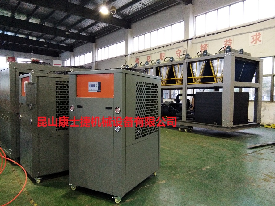 目前工廠使用最多的便是注塑機,塑膠粒經加熱溶化后注入模具中,凝結后,開模頂出成型塑膠工件,在連續生產過程中有需用對模具進行冷卻,以縮短塑膠凝結時間,提高工件尺寸精度,成型質量、表面質量。而在早期,很多用戶選用冷卻水塔為其降溫,這種冷卻方式只適合在環境溫度較低的情況下達到降溫目的,一旦環境溫度升高,則無法保證產品精度。因此,就需要使用到冷水機