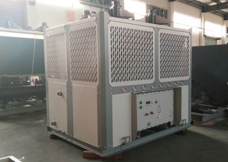 制藥反應釜控溫用的防爆型高低溫一體機組散熱方式有二種,一種是通過風扇以空氣為冷凝方式的風冷式,另一種是通過冷卻塔以冷卻循環水冷凝方式的水冷式。